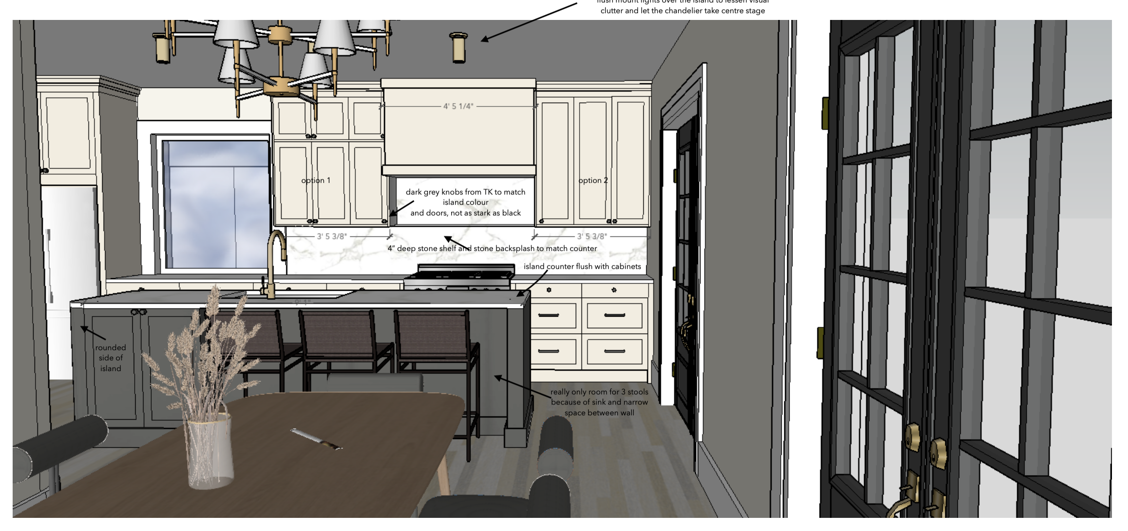 Custom design plans are $75/hour, after an initial consultation which involves measurements and photographs. Plans contain 3d drawings of the proposed space, whether it be cabinetry layouts for a kitchen or drawings for technician stamping for additions/renovations.